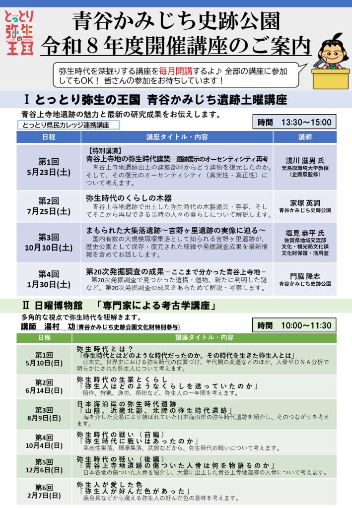 青谷かみじち史跡公園 令和8年度講座について